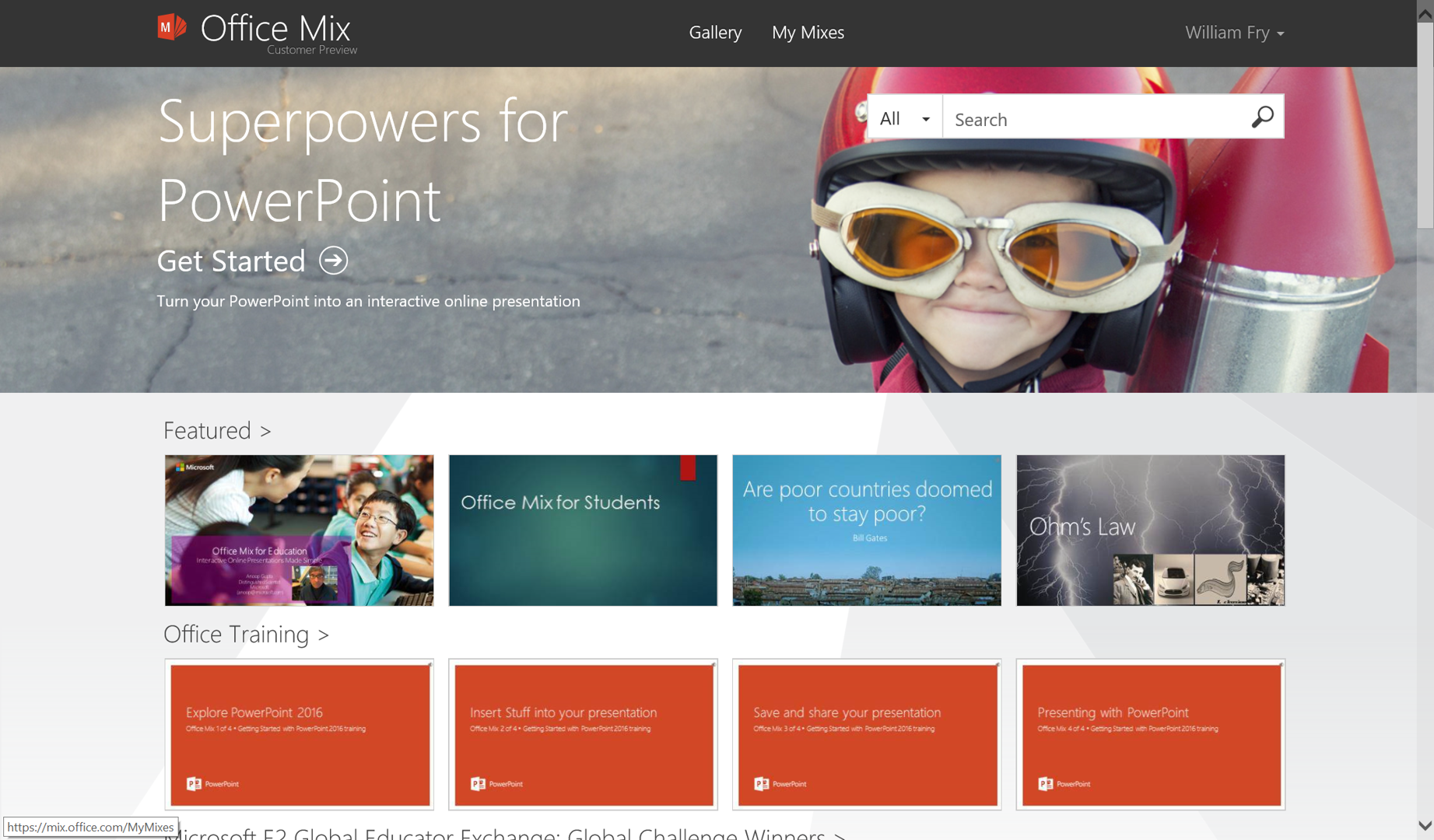 Office Mix enables teachers to add rich audio and video to their PowerPoint presentations, interactive simulations and assessments. With the click of a button, teachers can upload a Mix to a free hosted service where students can watch and learn, while the system collects assessment results and rich analytics.