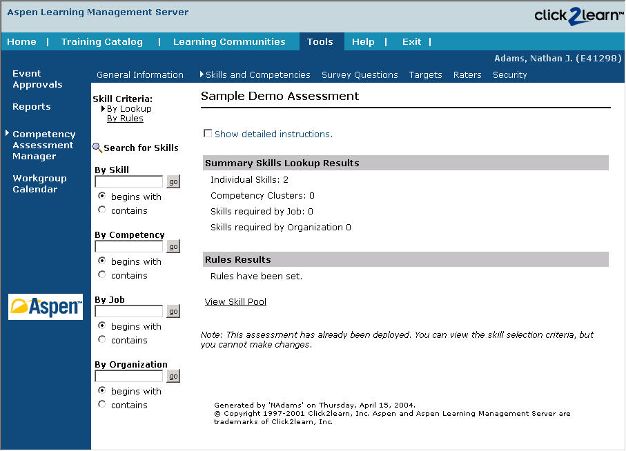 In Aspen 1.0, our company acquired another company and we integrated their Learning Content Management System (LCMS) product into our Learning Management System (LMS) product. In this release, we rebranded the products as Aspen to signify our new suite of offerings.