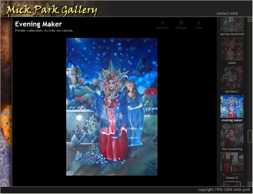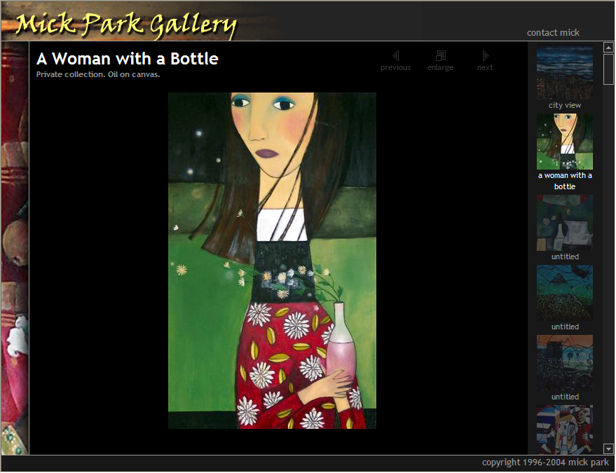 In late 2003, I redesigned the website of a local artist, Mick Park (http://www.mickpark.net/).